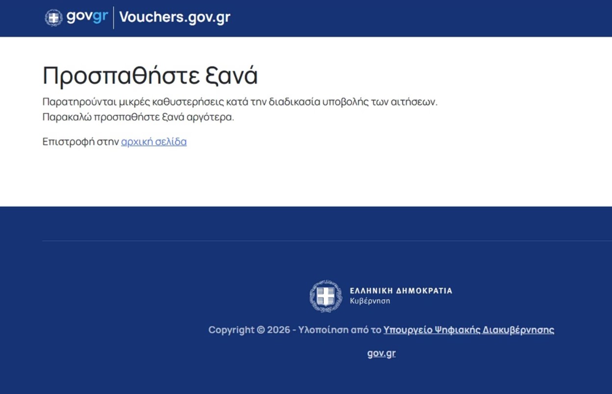Ωστόσο, η καθυστέρηση στην επαναλειτουργία της πλατφόρμας δημιουργεί εύλογα ερωτήματα για την ετοιμότητα του συστήματος, ενώ πολλοί δικαιούχοι εξακολουθούν να μην μπορούν να προχωρήσουν στην υποβολή της αίτησής τους.