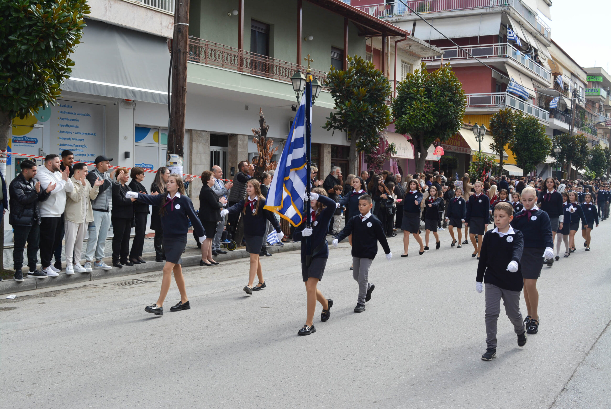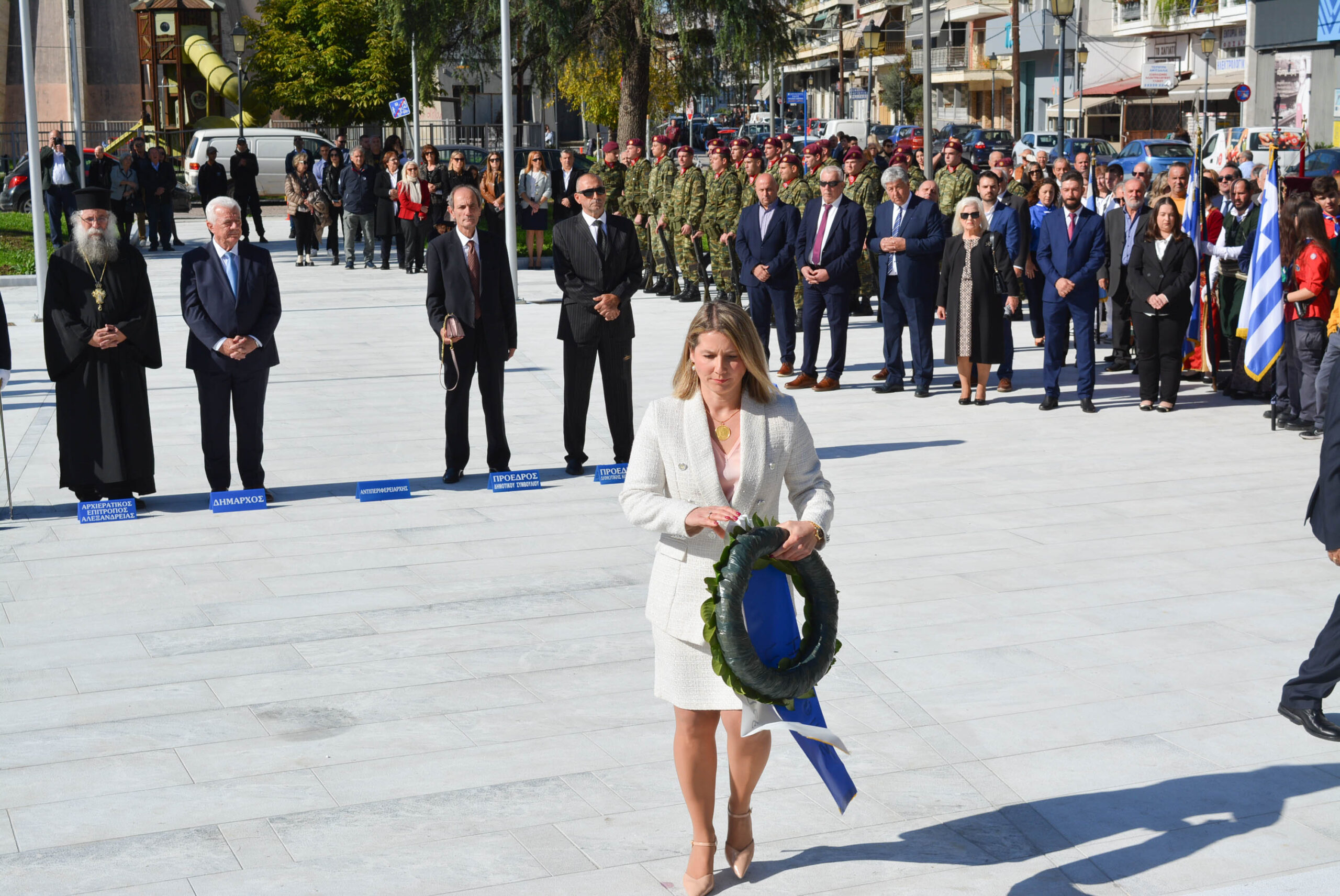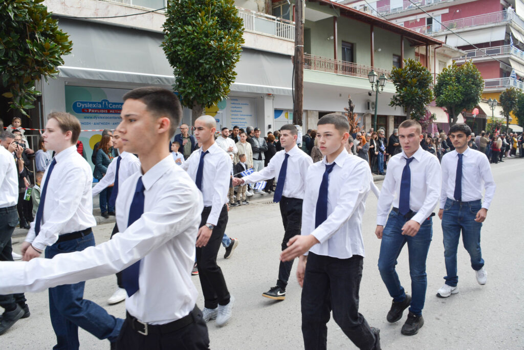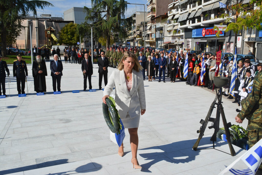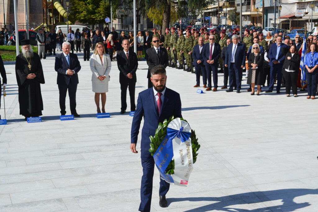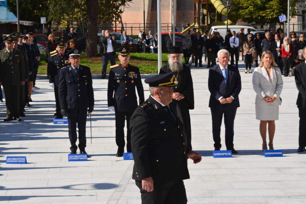 Είχε προηγηθεί η δοξολογία στον Ιερό Ναό της Κοίμησης της Θεοτόκου και η κατάθεση στεφάνων από εκπροσώπους θεσμών και φορέων, στην Πλατέια Ηρώων.