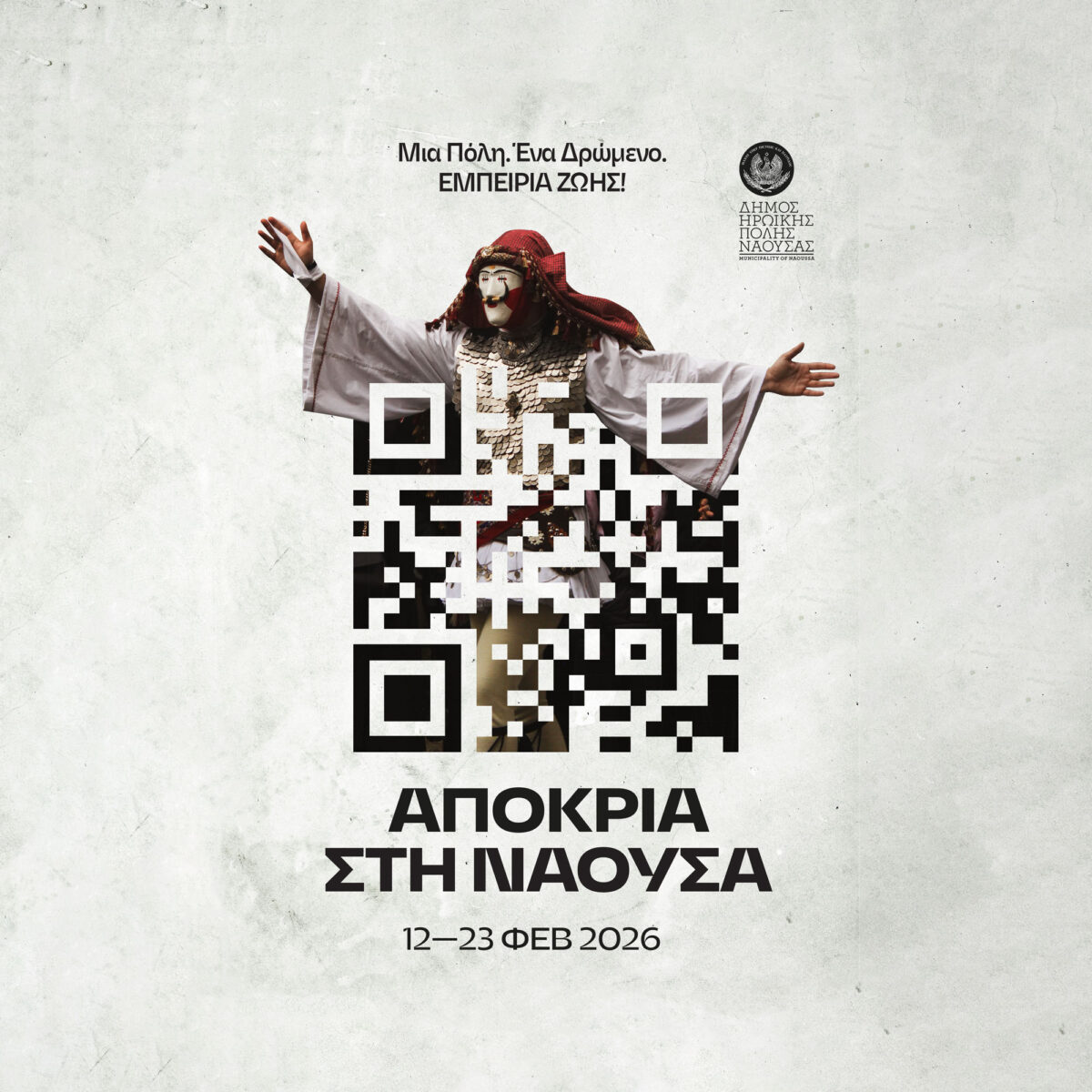O Δήμος Ηρωικής Πόλης Νάουσας διοργανώνει τις εκδηλώσεις «Νάουσα-Αποκριά 2026» κατά τον μήνα Φεβρουάριο. Οι αποκριάτικες εκδηλώσεις στη Νάουσα, έχουν ως επίκεντρο το δρώμενο «Γενίτσαροι και Μπούλες», διαφοροποιούνται από άλλες πόλεις που διοργανώνουν καρναβαλικές εκδηλώσεις, δίνοντας ιδιαίτερη έμφαση στη μοναδικότητα αυτού του εθίμου που λαμβάνει χώρα μόνο κατά τη διάρκεια της αποκριάς στη Νάουσα προβάλλοντας έτσι την παράδοση, τον πολιτισμό και την κουλτούρα των ανθρώπων που το υποστηρίζουν, το διαφυλάττουν και το διαιωνίζουν μέσα από την πιστή τήρηση του εθιμικού.