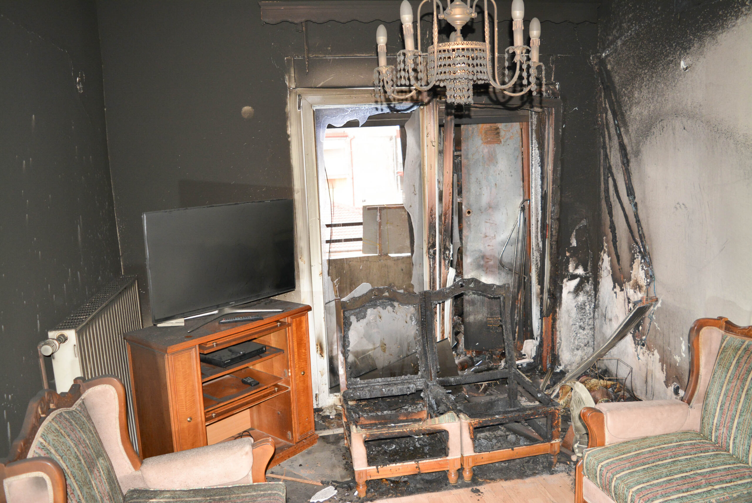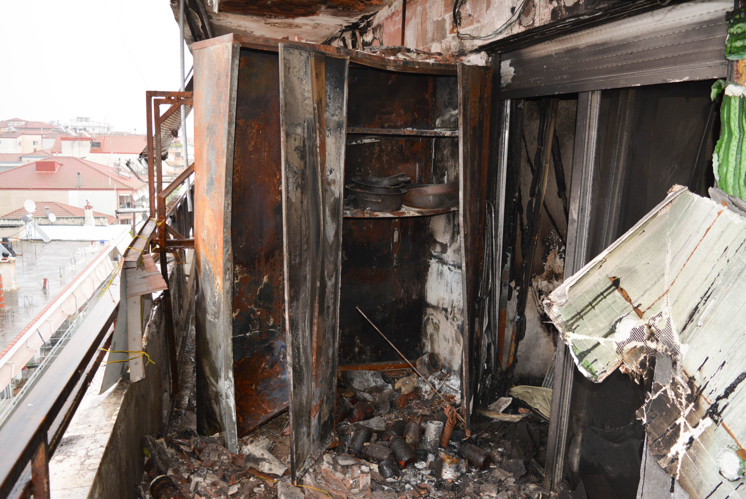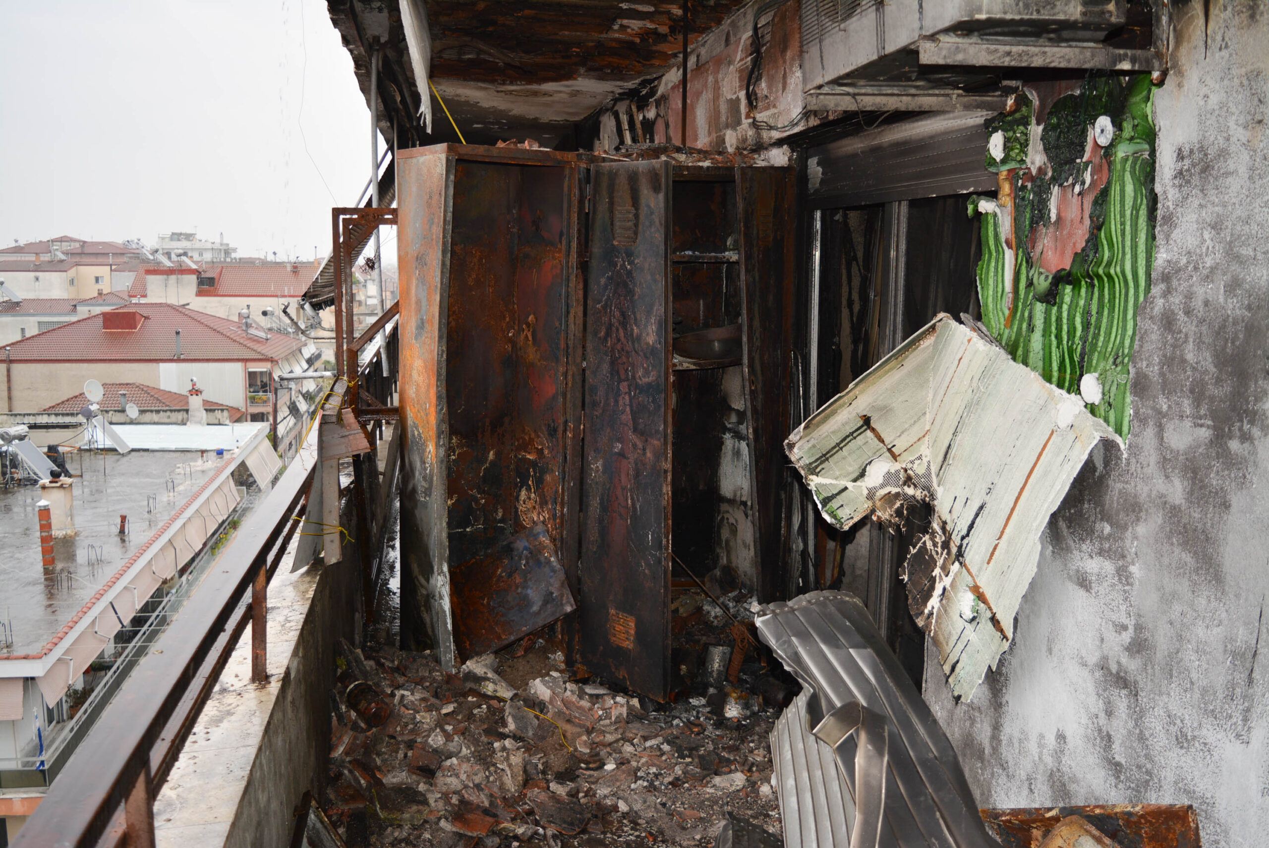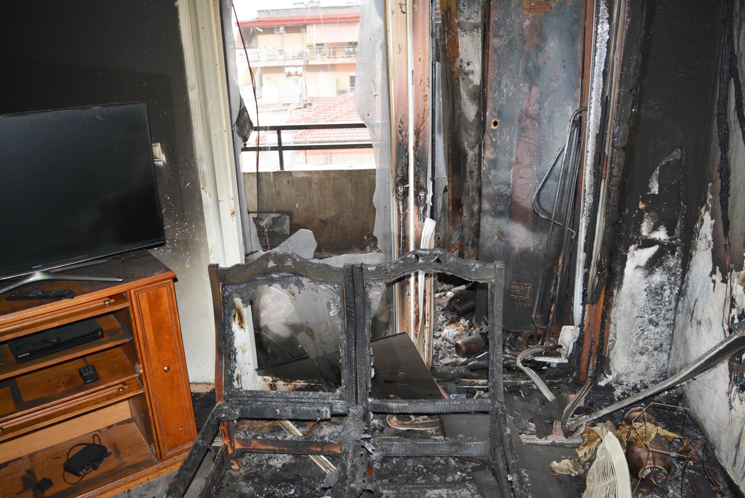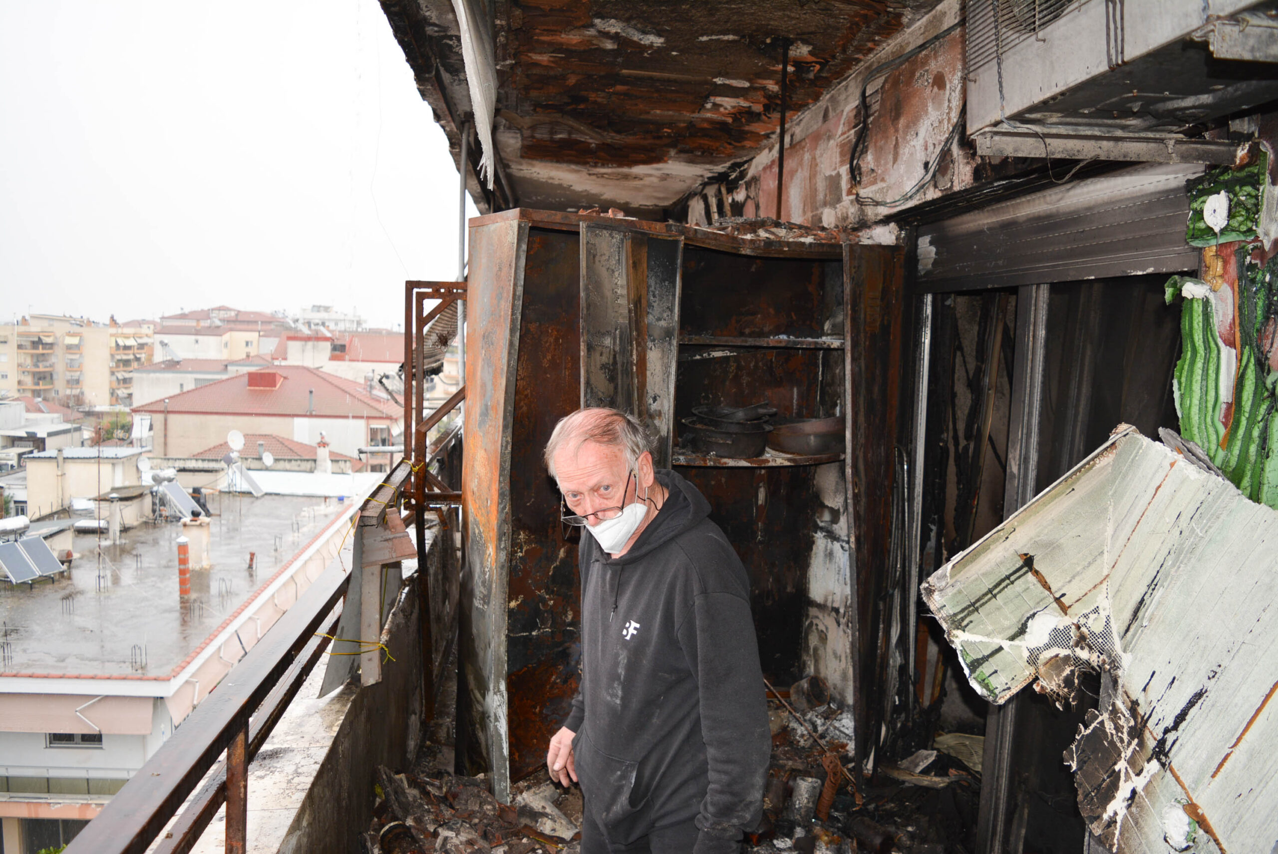 Η φωτιά μπορεί να έσβησε, όμως τίποτα δεν είναι πια ίδιο. Οι εικόνες από το εσωτερικό του σπιτιού είναι αποκαλυπτικές: τοίχοι μαυρισμένοι από τον καπνό, δωμάτια κατεστραμμένα, αντικείμενα λιωμένα. Στη βεράντα, μεταλλικές ντουλάπες, τέντες και κλιματιστικά έχουν παραμορφωθεί από τη θερμότητα, συνθέτοντας ένα σκηνικό που θυμίζει εικόνες «Αποκάλυψης». Ο ίδιος ο κ. Κίτσιος αντιμετώπισε για εβδομάδες αναπνευστικά προβλήματα, ως συνέπεια της εισπνοής καπνού. Και, όπως όλα δείχνουν, ο δρόμος για την αποκατάσταση της καθημερινότητας παραμένει μακρύς και δύσκολος για όλους τους κατοίκους της πολυκατοικίας.