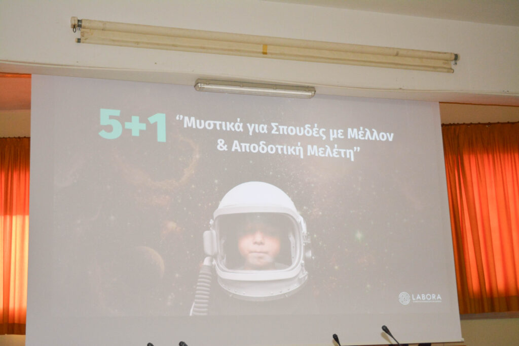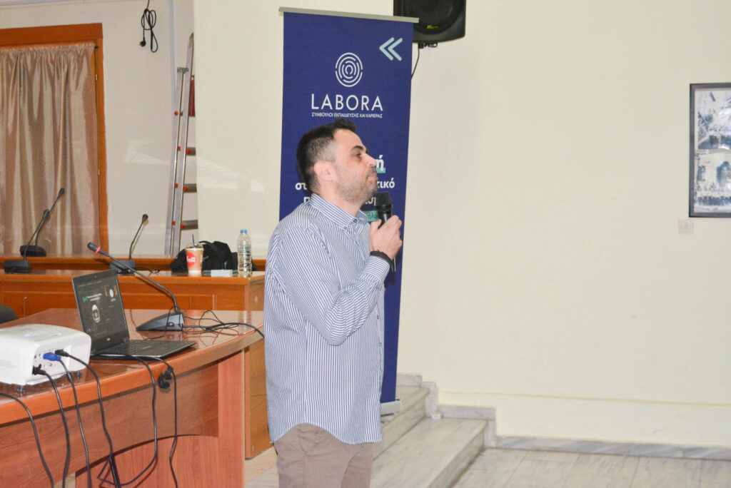 Κεντρικός ομιλητής ήταν ο συνεργάτης της LABORA Δημήτρης Μπαρλάκας, ο οποίος παρουσίασε αναλυτικά τις σύγχρονες τάσεις στην εκπαίδευση και στην αγορά εργασίας. Η ομιλία του, που διήρκεσε περίπου δύο ώρες, κράτησε αμείωτο το ενδιαφέρον του κοινού, συνδυάζοντας ενημέρωση, πρακτικές συμβουλές και παραδείγματα που βοήθησαν μαθητές και γονείς να προσεγγίσουν πιο ψύχραιμα και οργανωμένα τις κρίσιμες αποφάσεις που σχετίζονται με τις σπουδές.