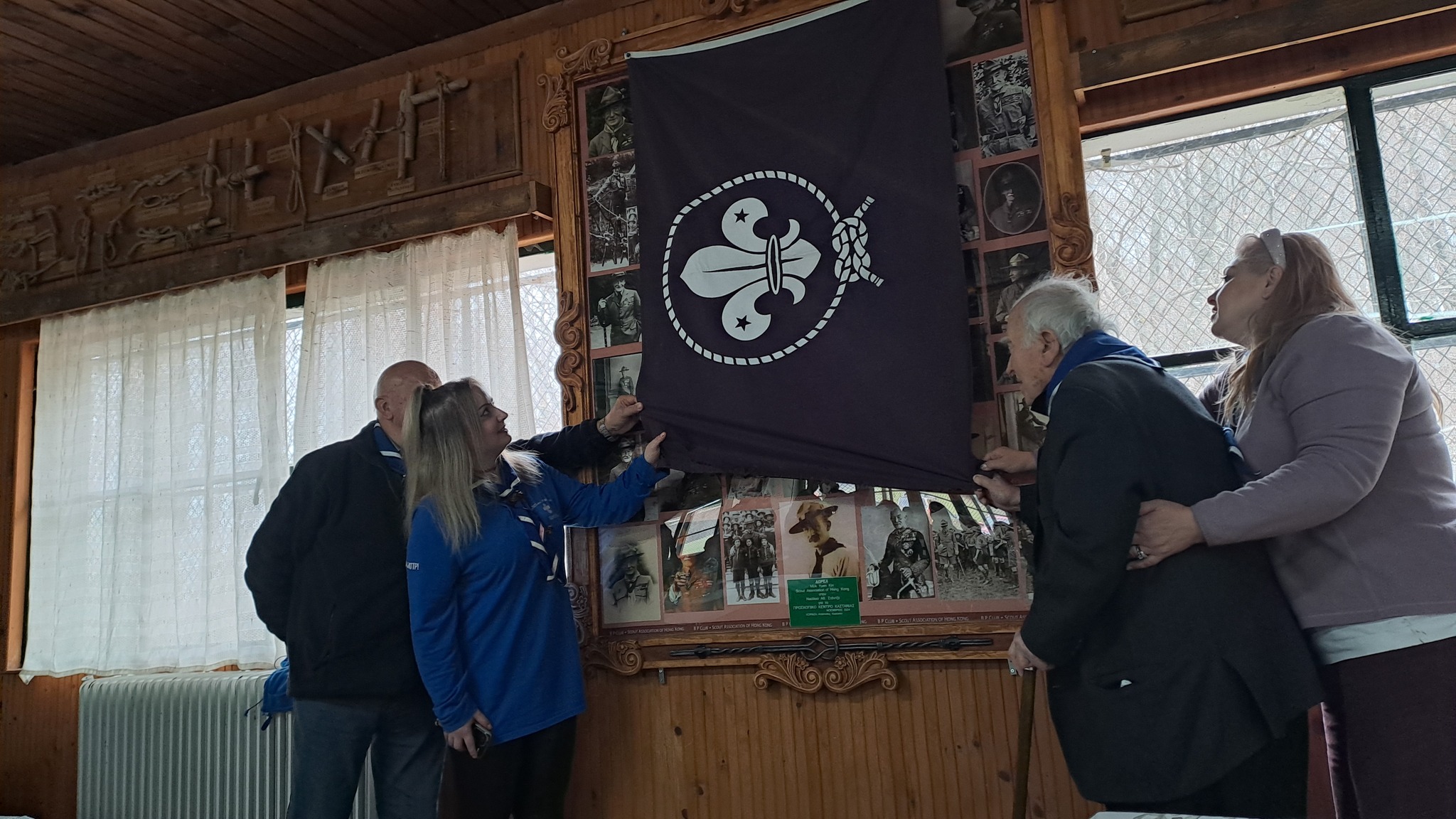 Η αποκάλυψη του κάδρου έγινε από τους παλαιούς προσκόπους Γιώργο Λαζαρίδη (Βέροιας), Τριαντάφυλλο Μεταξά (Θεσ/νίκης) και τα στελέχη Μαρία Γκασνάκη και Ράνια Δαφνοπούλου.